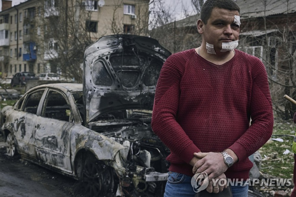 러 "6개 방면 공격중"…젤렌스키, 나흘만에 전선지역 재방문러시아군 공습 받은 우크라이나 동부 슬라뱐스크 거리(슬라뱐스크 AP=연합뉴스) 27일(현지시간) 러시아군의 미사일 공격으로 파괴된 건물과 자동차 앞에 한 부상자가 서 있다. 2023.3.27 photo@yna.co.kr(이스탄불=연합뉴스) 조성흠 특파원 = 러시아가